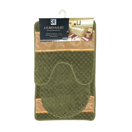Athena Waffle Texture Design 3 Piece Bathroom Rug Set Bath Rug
